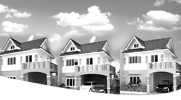 Minimalistic 2-storey modern design unit with side lawn and with provisions for bedrooms, attic and dirty kitchen.