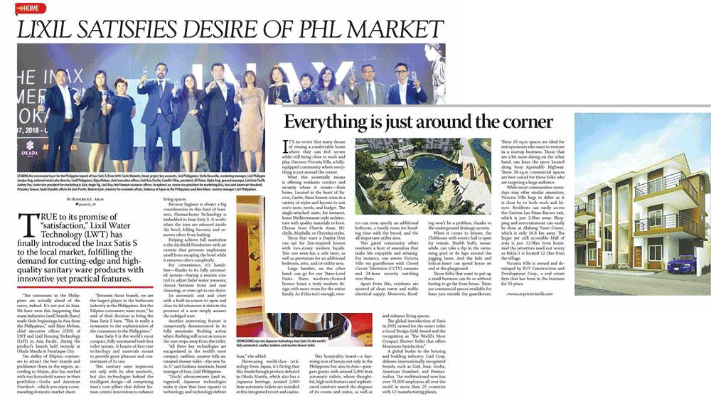 January 24, 2018 – Victoria Ville’s banner, “Everything is just around the corner” has been featured in Business Mirror – giving everyone, every reason why Victoria Ville has everything that we want for a home.