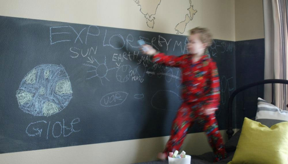 Similar to glass, putting a blackboard in your child’s room create a space for the wild ideas and a trigger for his creativity. On the other hand, it’s safer to glass. Only, you need to be more hardworking in cleaning out the chalk dust.