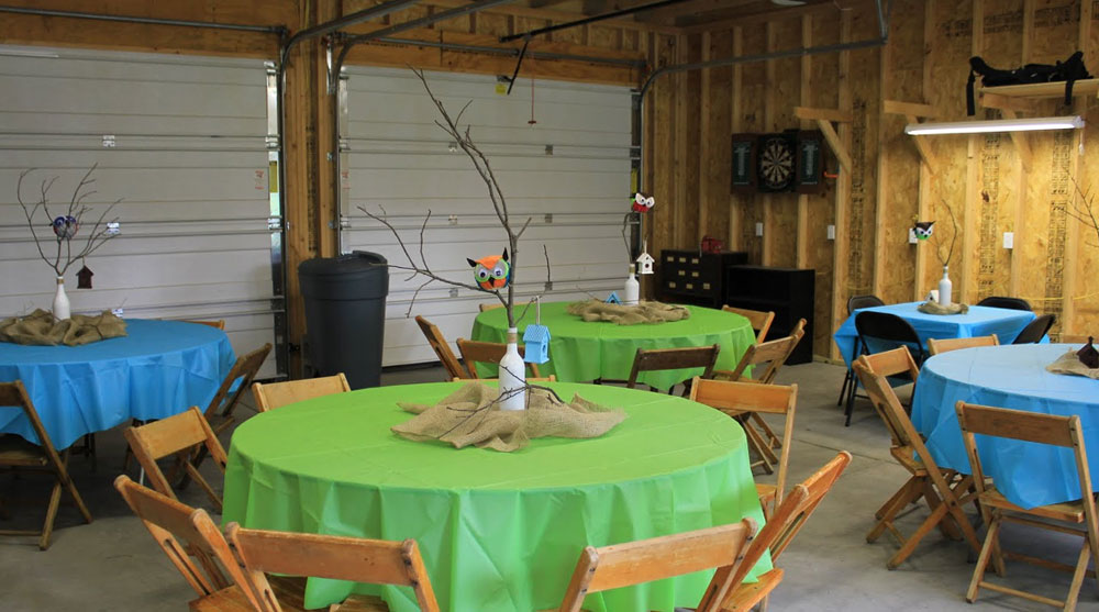 Unpark your car and set up your garage. Tables and chairs with decor will upgrade the look suitable to your party.